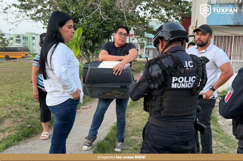 El operativo contó con el respaldo de elementos de Seguridad Pública y la colaboración del albergue Katt&Cann, instancia que brindará atención y seguimiento al canino mientras se define su situación legal y de salud.