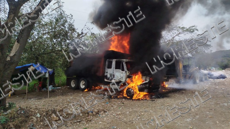 Un ataque deliberado contra dos tractocamiones movilizó a corporaciones de seguridad y cuerpos de auxilio en el basurero de la comunidad Loma del Gallo, donde las unidades realizaban actividades operativas cuando fueron alcanzadas por el fuego.