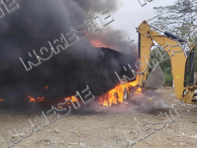 De acuerdo con reportes preliminares, varios individuos arribaron al sitio a bordo de motocicletas y, tras aproximarse a los vehículos de carga, les prendieron fuego de manera intencional. El siniestro generó momentos de tensión entre trabajadores presentes, quienes se resguardaron mientras solicitaban apoyo a las autoridades.