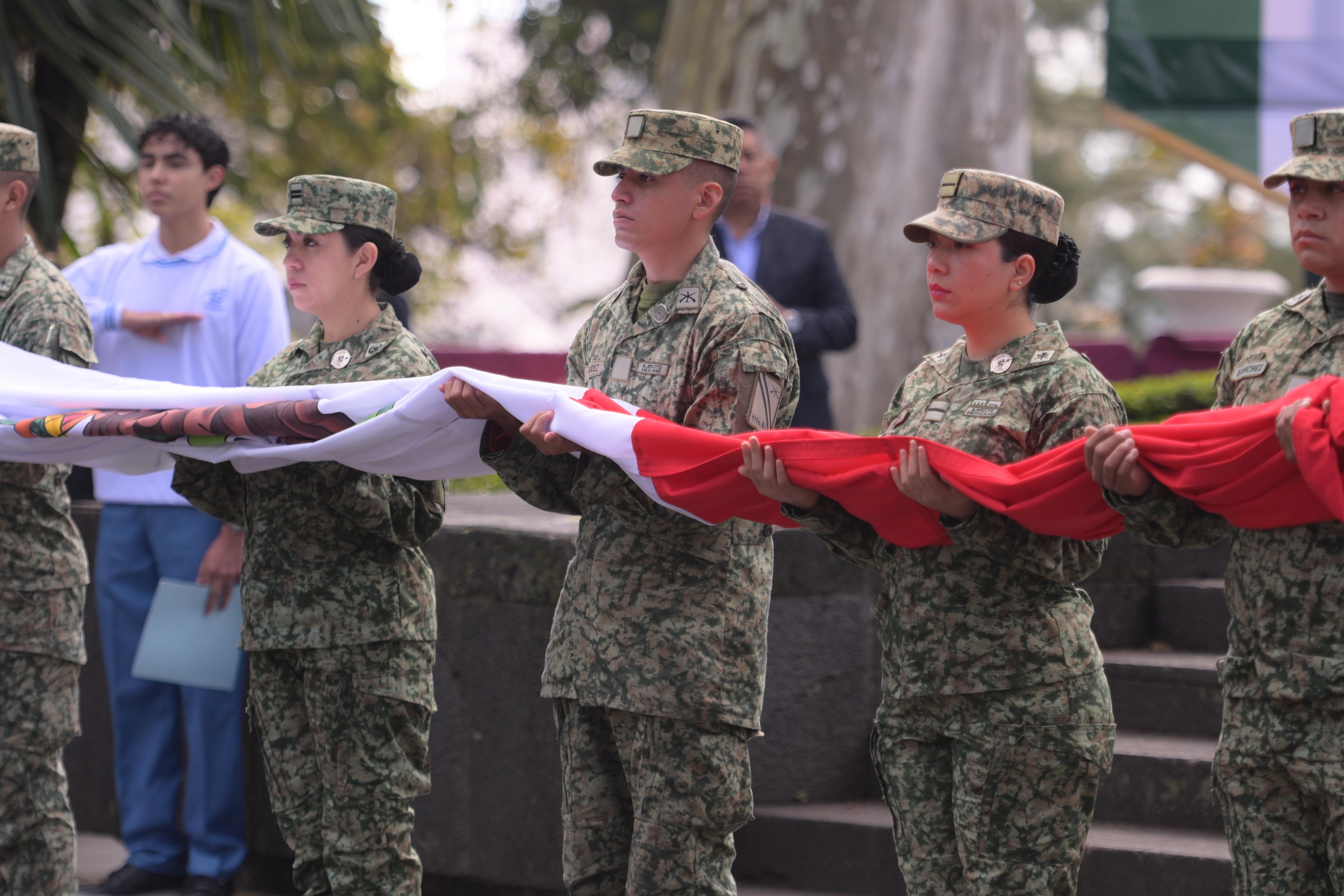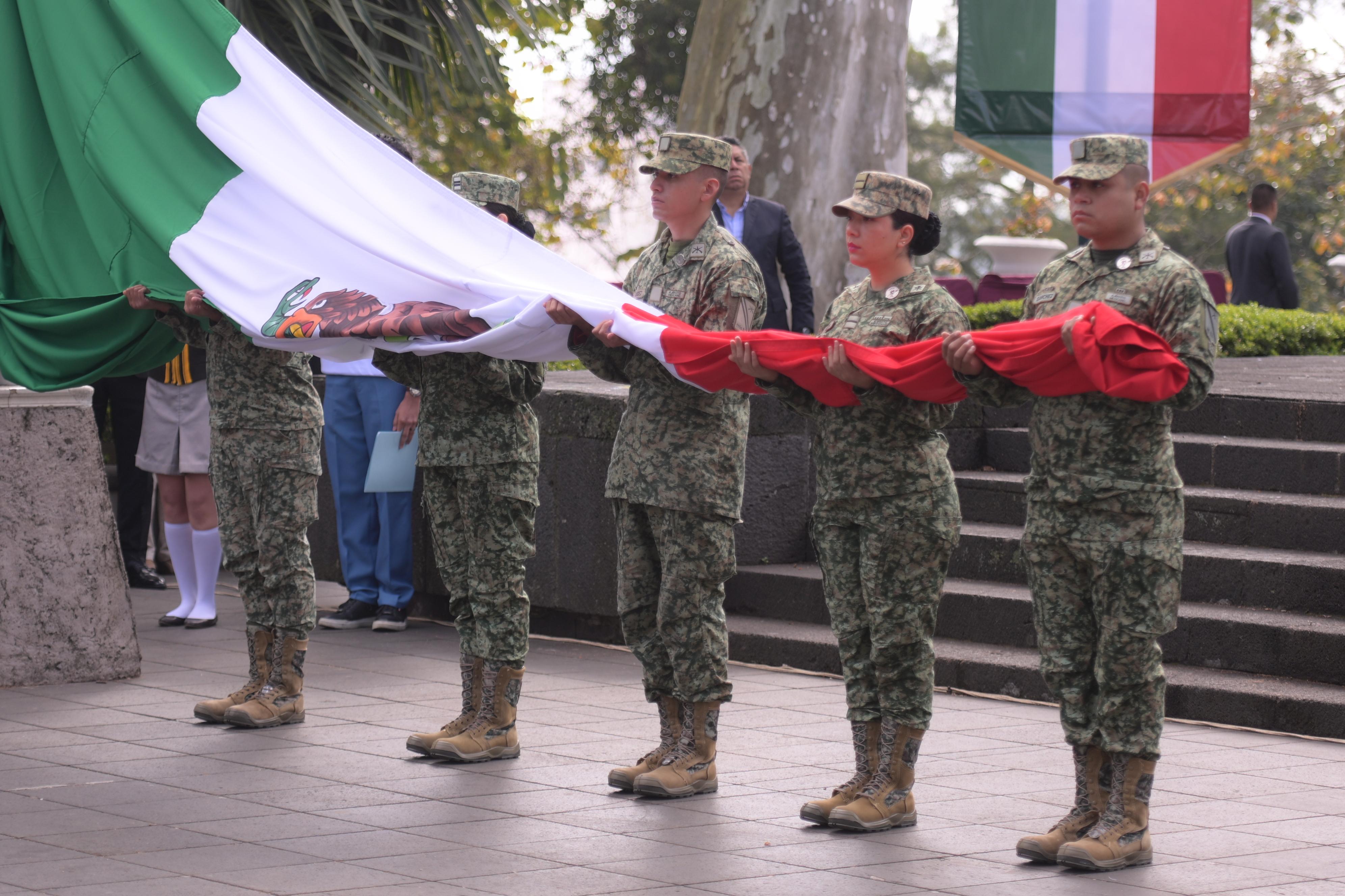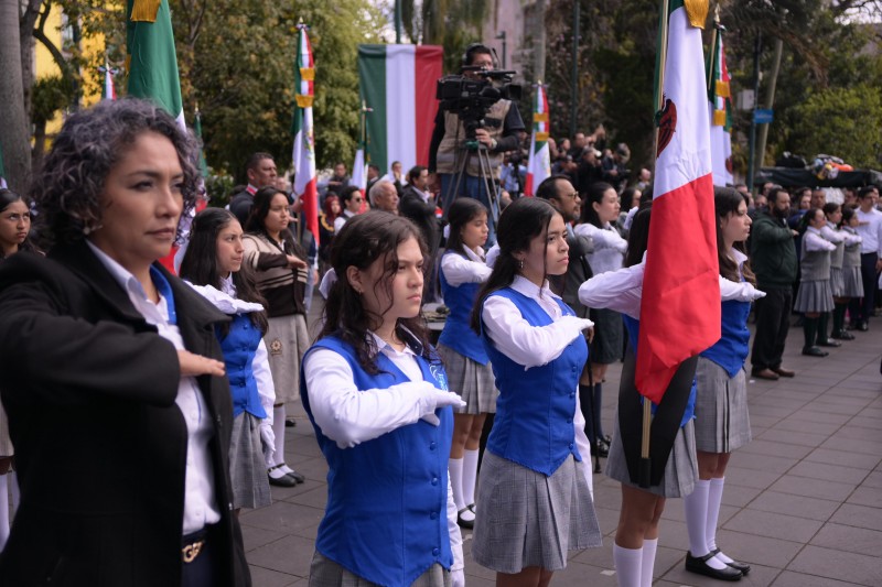Destacó que cada etapa histórica de la enseña nacional refleja la grandeza de las civilizaciones que dieron origen a la nación y el sacrificio de mujeres y hombres que defendieron la libertad, la justicia y la soberanía. En este sentido, exhortó a la juventud veracruzana a renovar su juramento de lealtad y ser digna representante de los colores nacionales.