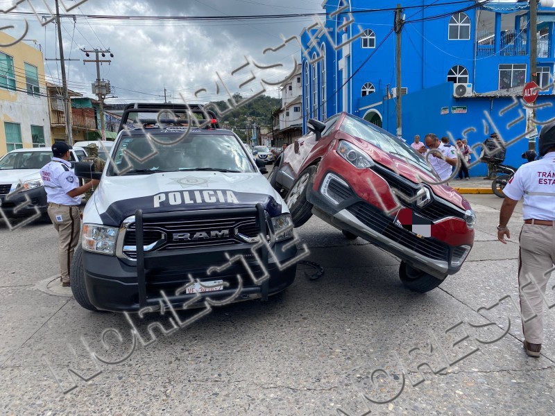 Un accidente entre una patrulla de la policía municipal de Poza Rica y una camioneta particular se registró en la colonia 27 de septiembre, sin dejar personas lesionadas.
