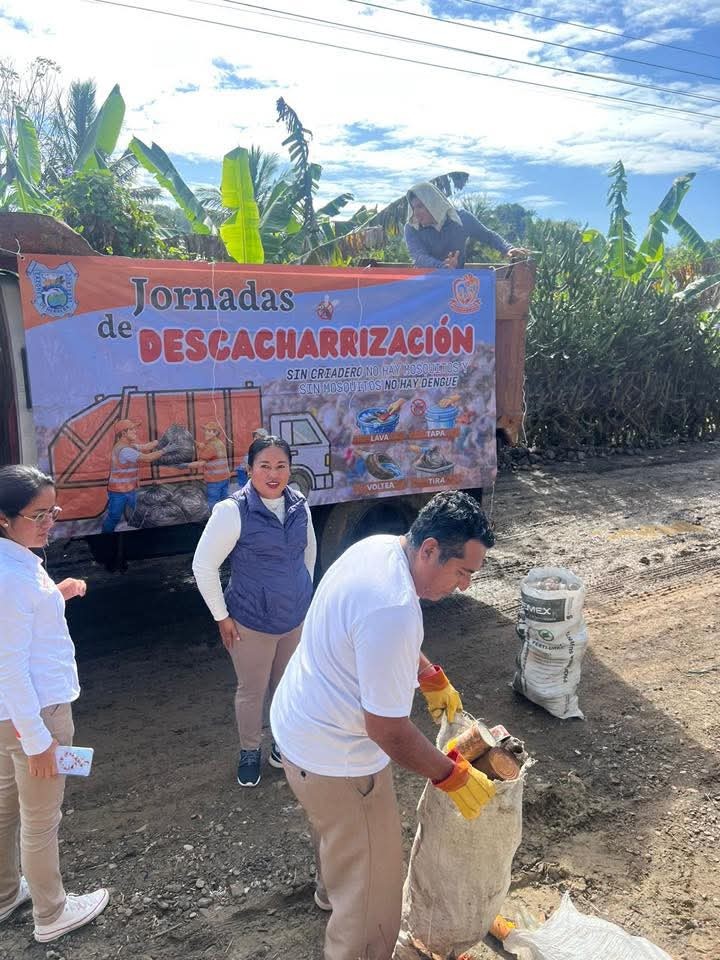 Durante esta intensa jornada de trabajo, personal de la Dirección de Salud, la Dirección de Limpia Pública y la Dirección de Ecología unieron esfuerzos para retirar objetos en desuso que acumulaban agua, tales como llantas, recipientes, láminas y diversos cacharros, los cuales representaban un foco rojo para la proliferación del mosquito transmisor de enfermedades.