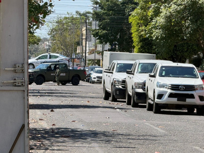Personal de la Secretaría de la Defensa, de la Guardia Nacional y de la Policía Estatal de desplegaron sobre la calle Juan Enríquez, esquina 20 de noviembre, bloqueando el paso de vehículos.