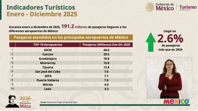 "Estamos arriba del promedio mundial", enfatizó Rodríguez, señalando que estas cifras no solo representan un flujo constante de visitantes, sino la consolidación de México como el destino preferido y más resiliente de la región tras los desafíos de los últimos años.