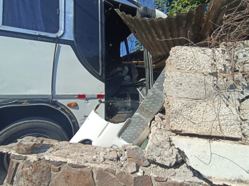 Durante su descenso, el autobús impactó al menos cuatro vehículos estacionados y avanzó como “una mole sin control”, según relataron testigos. La trayectoria concluyó al estrellarse contra una barda de piedra y parte de la vivienda del señor David Esparza, provocando severos daños estructurales.