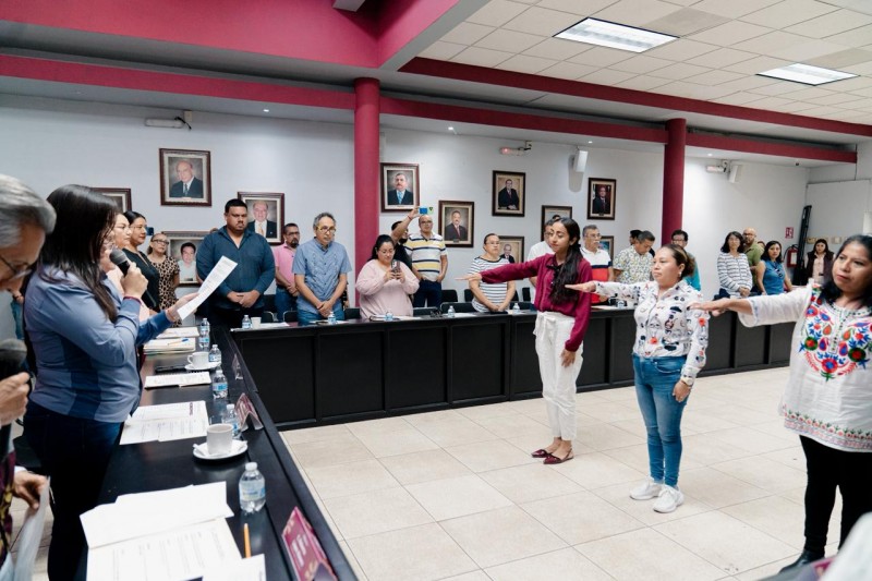 Acompañada por integrantes del cuerpo edilicio y representantes ciudadanos, durante esta sesión se tomó protesta a tres nuevos consejeros comunitarios, quienes se integran a este órgano encargado de analizar, priorizar y definir las acciones y proyectos de infraestructura social para el municipio.
