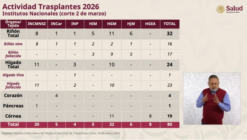 El secretario de Salud, David Kershenobich, afirmó que México ha logrado una transformación histórica en el campo de la medicina de alta especialidad, al convertir los trasplantes de órganos en un procedimiento protocolizado y accesible en todo el territorio nacional.