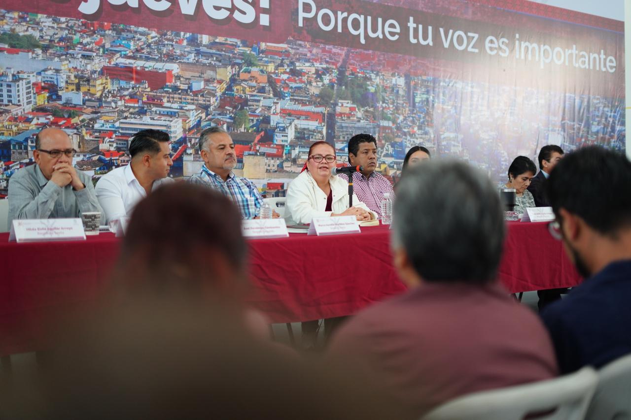 Acompañada por el Síndico Único, Dr. Marco Aurelio Martínez Sánchez; el Secretario del Ayuntamiento, Mtro. Víctor Manuel Meza Cruz; Regidoras; Regidores, y titulares de las Direcciones Municipales, reiteró que, a través de este ejercicio democrático de escucha y diálogo se han atendido y dado respuesta a casi 700 peticiones ciudadanas.