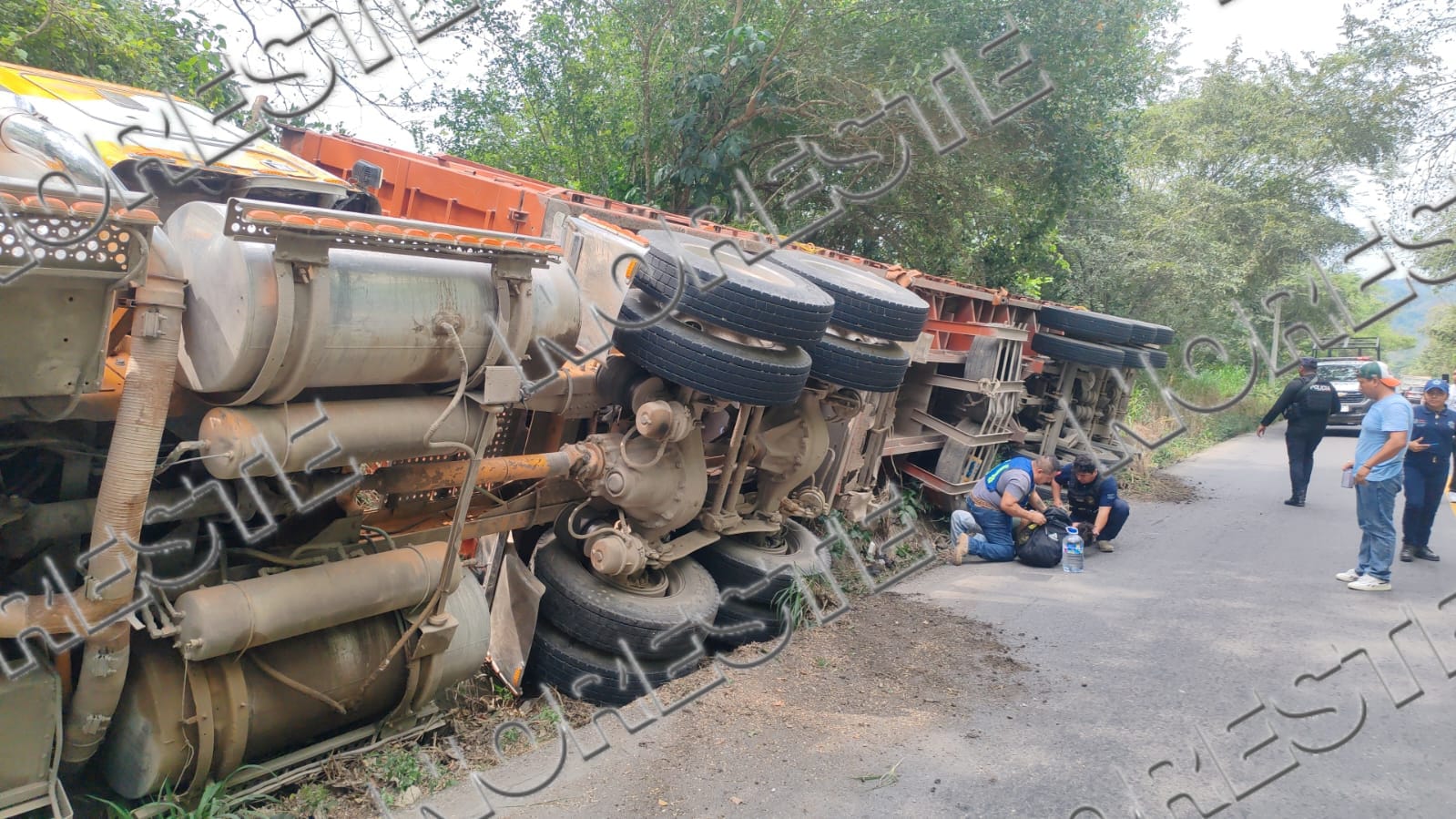 De acuerdo con la información recabada, la pesada unidad transportaba aproximadamente 40 toneladas de naranja tardía cuando, por causas que aún no han sido precisadas, el operador perdió el control del vehículo y terminó volcándose sobre la carpeta asfáltica.