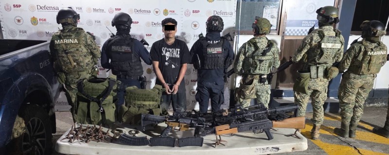 En Coatzacoalcos fue aprehendido un masculino por delitos contra las instituciones de Seguridad Pública y en Tuxpan se aseguró un arma de fuego larga, granadas de 40 mm, una granada de fragmentación y una camioneta sin reporte de robo.