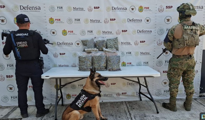 En operativos realizados en establecimientos dedicados al envió de paquetería, binomios caninos decomisaron en Poza Rica, Córdoba, Boca del Río, Veracruz y Coatzacoalcos, poco más de 10 kilogramos y 36 cigarros de hierba seca similar a la marihuana, además de 30 gramos de presunto cristal.
