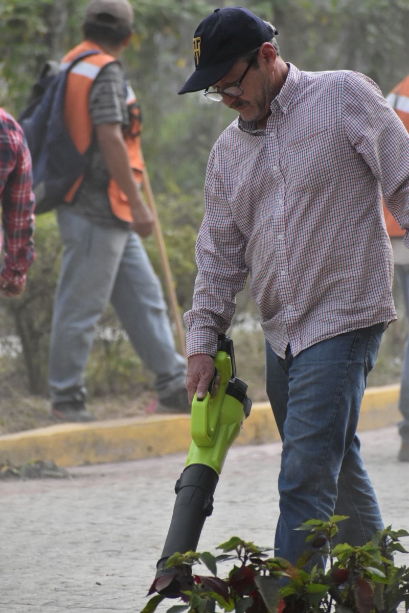 Las acciones comenzaron en la entrada principal del municipio, donde cuadrillas de trabajadores realizaron labores de barrido, retiro de ramas, lavado y descacharrización, con el propósito de mantener en buenas condiciones este acceso al municipio.