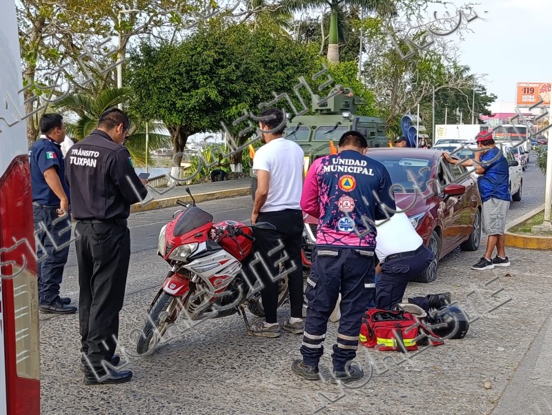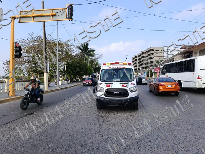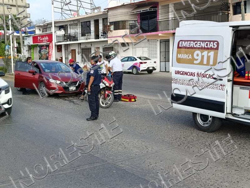Tras el impacto, la unidad ligera perdió estabilidad y sus ocupantes terminaron sobre el pavimento. Como consecuencia del accidente resultó lesionada Karen N., de 21 años, quien viajaba como acompañante en la motocicleta y tiene su domicilio en la colonia Colinas del Sol.