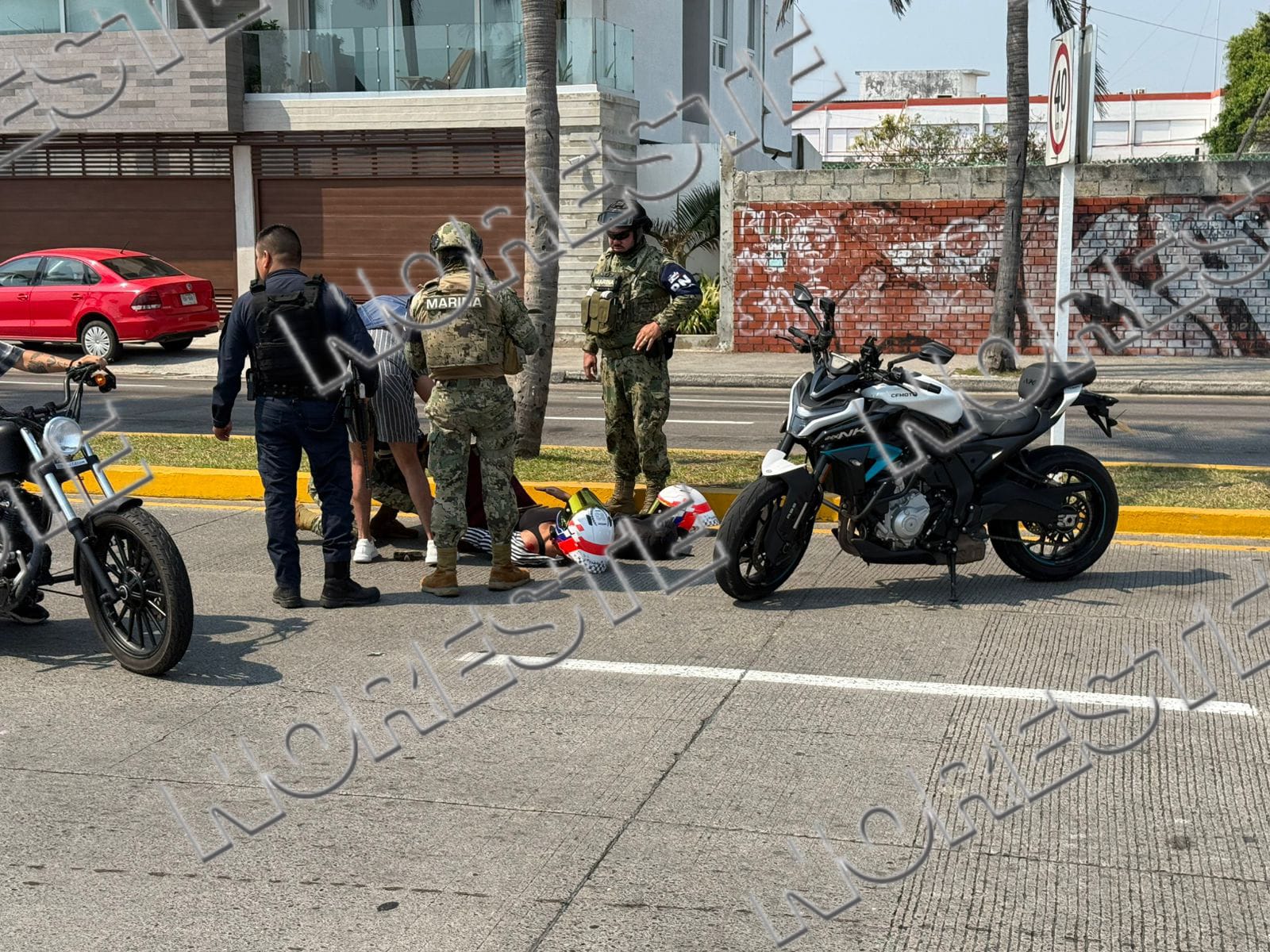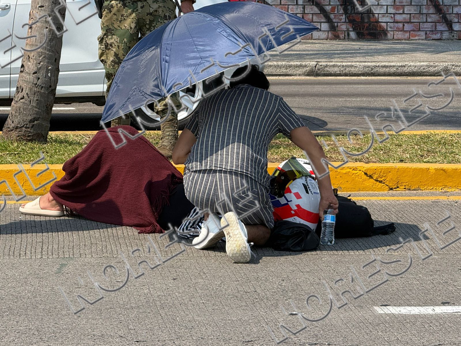 Una mujer, de entre 20 y 30 años, se lesionó al caer de la motocicleta n la que viajaba sobre el bulevar Manuel Ávila Camacho, en la ciudad de Veracruz.