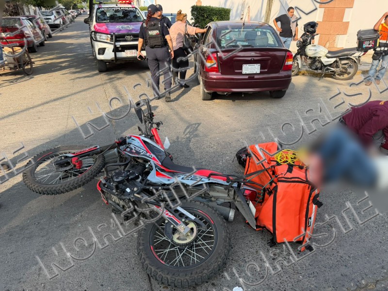 El joven, quien se dedica al servicio de moto envíos, viajaba en una motocicleta Vento color roja y se disponía a entregar un pedido cuando fue derribado por el vehículo. El impacto le causó lesiones y raspaduras en sus extremidades, así como daños materiales a la motocicleta.