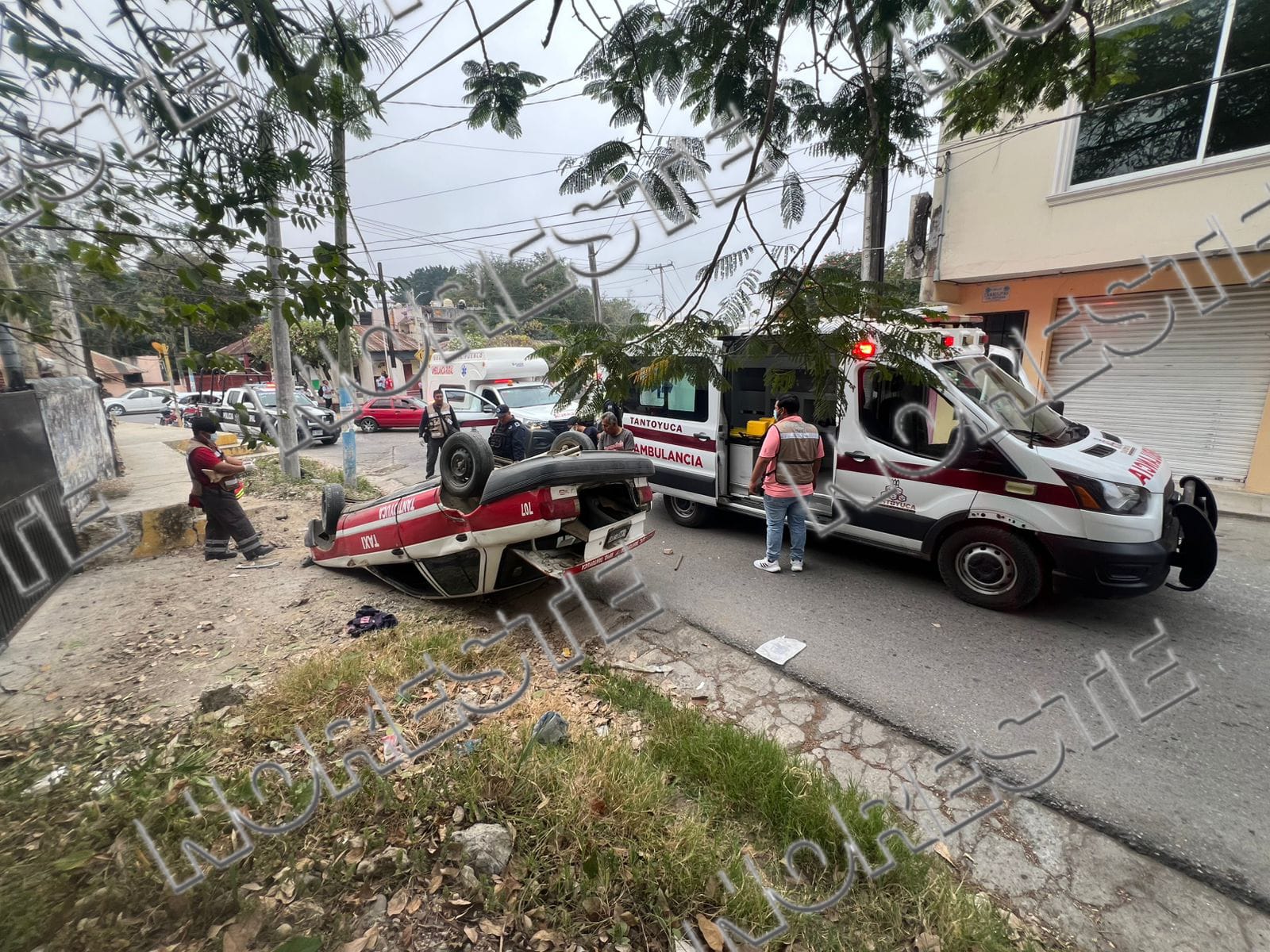 Un taxista resultó lesionado luego de sufrir una aparatosa volcadura cuando circulaba por calles de la colonia Cerro de la Cruz, lo que generó la movilización de cuerpos de emergencia.