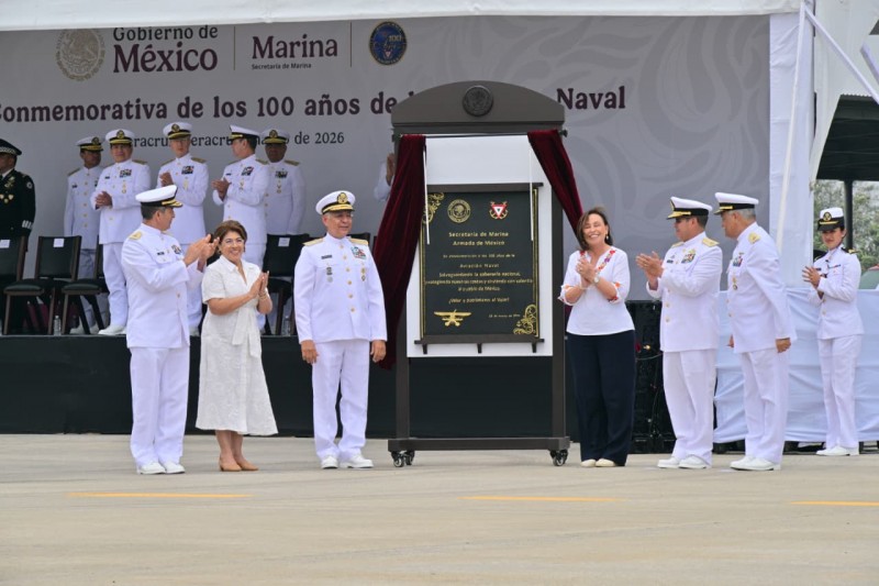Asimismo, el Almirante Secretario de Marina, al hacer uso de la palabra, destacó que a cien años de su creación la Aviación Naval se ha consolidado como uno de los componentes tácticos fundamentales del Poder Naval de México, al contribuir desde el espacio aéreo a la vigilancia y protección del Mar Territorial y la Zona Económica Exclusiva del país, así como al fortalecimiento de la seguridad nacional y el auxilio a la población en situaciones de emergencia. De igual manera, resaltó que por instrucción de la Presidenta de los Estados Unidos Mexicanos, Claudia Sheinbaum Pardo, el 15 de marzo fue declarado como “Día de la Aviación Naval”, reconocimiento a la labor estratégica, histórica y humanitaria de este componente de la Armada de México, el cual continuará fortaleciéndose mediante un proceso de modernización que contempla la incorporación de nuevas aeronaves y el fortalecimiento de la formación y capacitación del personal aeronaval.