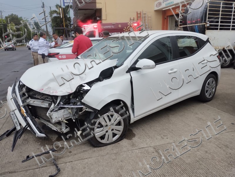 Según los primeros reportes, el conductor del Aveo presuntamente circulaba a exceso de velocidad sobre esta vialidad y terminó impactándose por la parte trasera contra el vehículo rojo. Tras el choque, la unidad continuó su trayectoria y se estrelló contra el taxi que se encontraba en la zona.