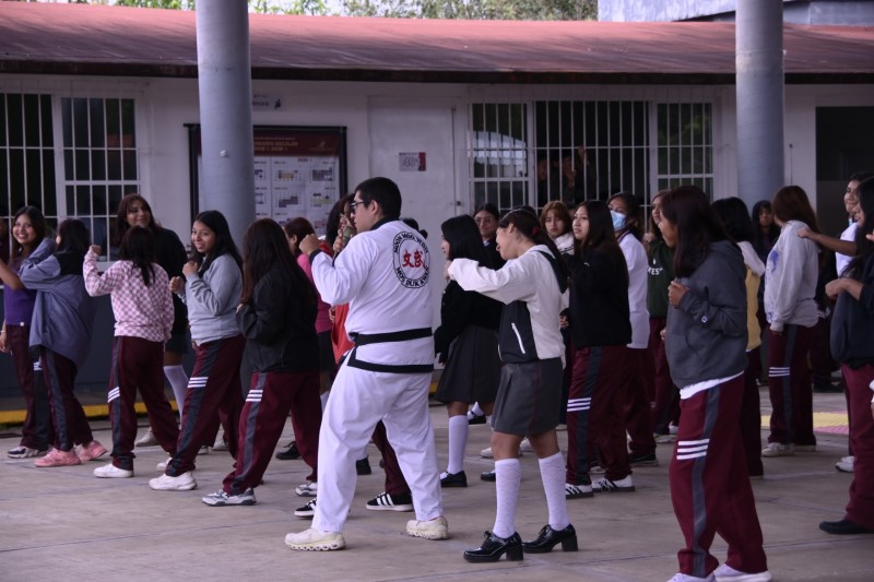 El director de Identidad y Convivencia, Víctor Hugo Gómez Santos, informó que este taller realizado para jóvenes del plantel y que forma parte del proyecto "Juntas Somos Mas Fuertes" está pensado en generar conocimientos básicos de defensa personal y a su vez fomentar actividades de sana convivencia entre las personas.