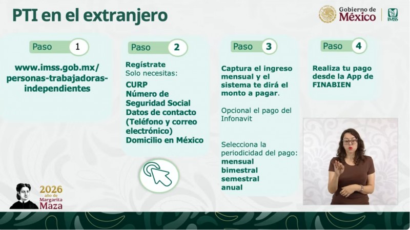 A través de esta modalidad, los mexicanos que laboran por cuenta propia en el extranjero pueden inscribirse para obtener una cobertura integral. Robledo enfatizó que no se trata de una protección limitada, sino de un acceso total a los pilares del instituto. "Tienen acceso a todos los seguros que ofrece el IMSS: enfermedades y maternidad, así como el seguro de riesgos de trabajo", puntualizó el funcionario.
