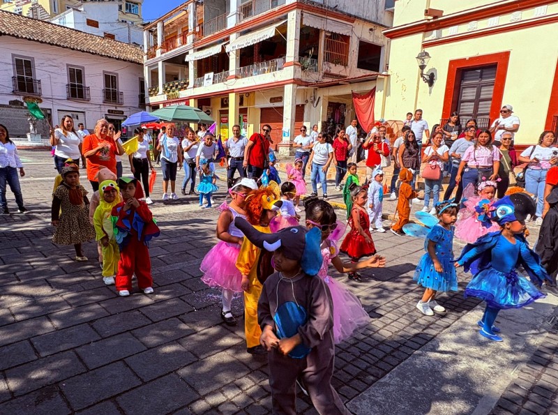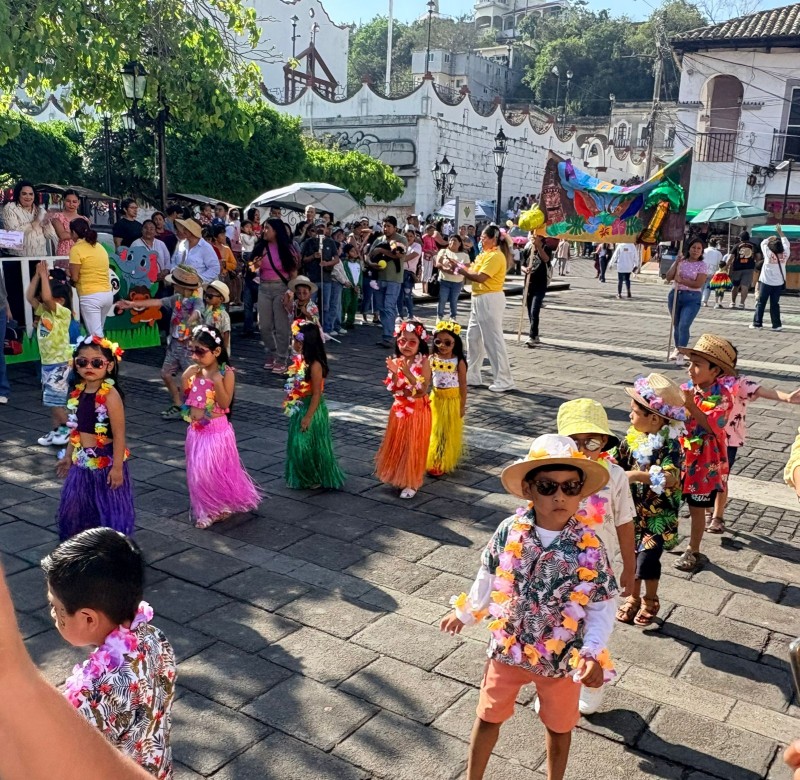 El recorrido dio inicio sobre la calle 16 de Septiembre, donde niñas y niños, acompañados de docentes y padres de familia, desfilaron con vistosos atuendos alusivos a la temporada, destacando flores, mariposas y personajes primaverales.