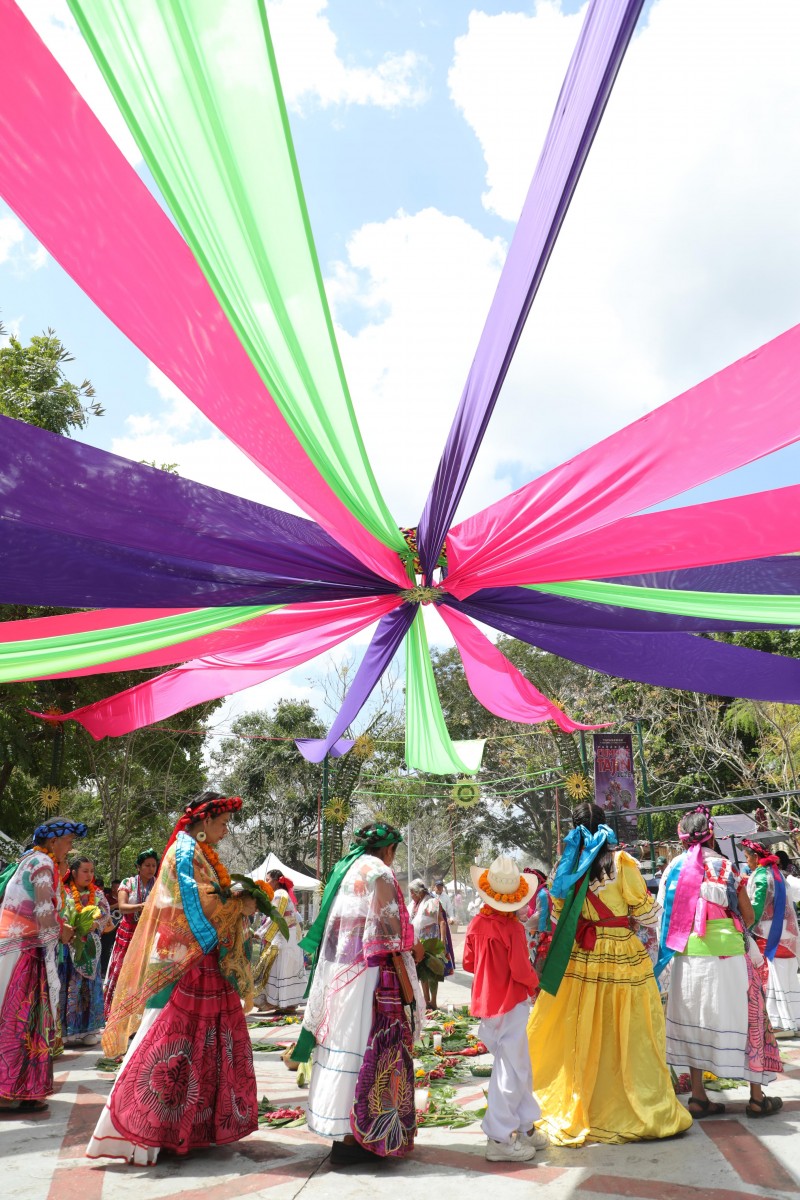 Este espacio, orientado a preservar y difundir las tradiciones del pueblo totonaca, destaca por su minuciosa preparación, que inicia ocho días antes del festival con el teñido de las hojas de maíz, logrando la vibrante paleta de colores que atrae a las y los visitantes.