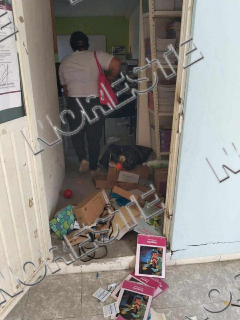 Al llegar por la mañana, maestras y personal directivo encontraron las instalaciones revueltas, con objetos en el piso, protecciones y ventanas dañadas, así como ventiladores y un dispensador de agua inservibles por los destrozos.