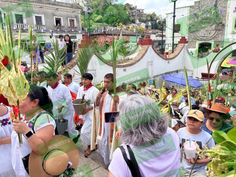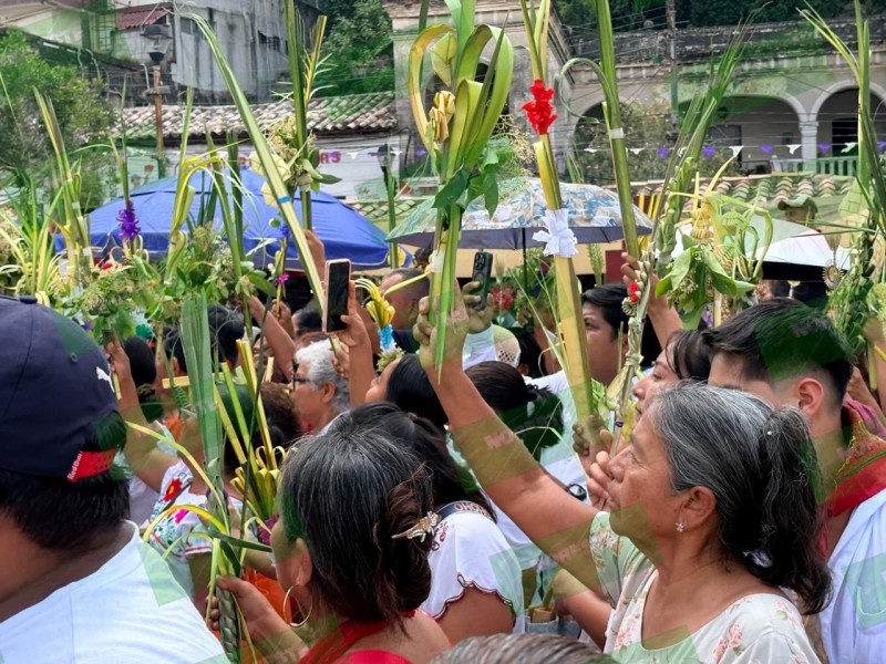 La celebración incluyó una procesión solemne por calles de Papantla, en la que los asistentes acompañaron al sacerdote Miguel Navarro portando sus palmas mientras entonaban cantos como el “Hosanna”, expresión de alabanza y júbilo por la llegada del Salvador.