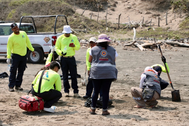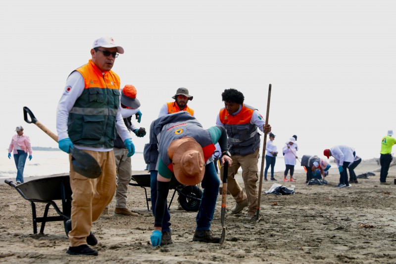 Brigadas del Plan Local de Contingencia, en coordinación con el Grupo Interinstitucional del Gobierno de México, realizaron labores de limpieza en un tramo aproximado de 3.5 kilómetros en las playas La Trocha y La Cava, en atención a la presencia de residuos en esta franja del litoral veracruzano.