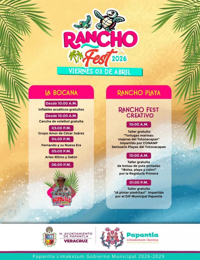 Para el sábado 4 de abril, las actividades continuarán en Rancho Playa, donde se desarrollarán talleres de pintura, dinámicas familiares organizadas por el DIF y un cierre artístico a las 17:00 horas cerrando con Calixto Méndez.