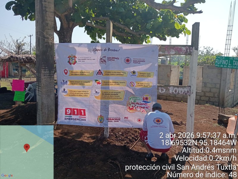 Ante incremento en la afluencia de visitantes a playas de San Andrés Tuxtla, la dirección de Protección Civil Municipal exhorta a la ciudadanía a seguir las indicaciones de autoridades locales.