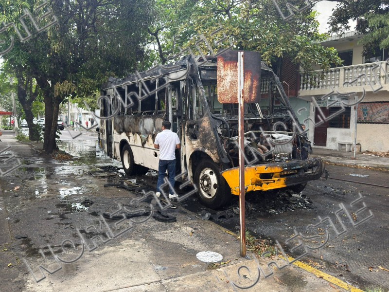 Un camión de transporte público ardió en llamas la mañana de este martes 7 de abril, en las calles 20 de Noviembre y Américas, en el fraccionamiento Virginia, de la ciudad de Veracruz.