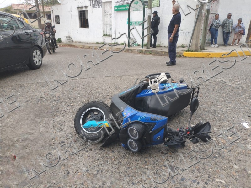 Dos adolescentes que viajaban en una motoneta terminaron impactándose contra un automóvil en el cruce de las calles Benito Juárez y Oriental. Ambos resultaron lesionados y fueron trasladados al hospital Melchor Ocampo.