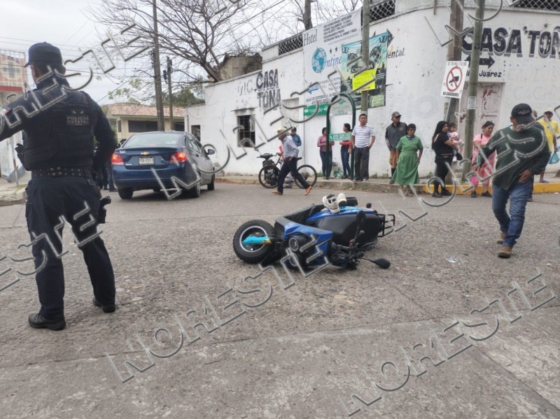 En el sitio también se vio involucrado un vehículo Chevrolet Ónix color gris, con placas del estado de Veracruz, manejado por Luis Enrique Mora Salazar, de 30 años, quien señaló que su unidad fue impactada por la motocicleta cuando intentaba incorporarse a la avenida Benito Juárez desde la calle Oriental.