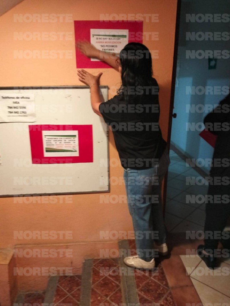 Integrantes de la Delegación 30 Veracruz del Sindicato Nacional de Trabajadores de la Educación para los Adultos (SNTEA) colocaron consignas en las oficinas del organismo en distintos puntos de la entidad, como medida de presión ante la falta de respuesta a sus demandas.
