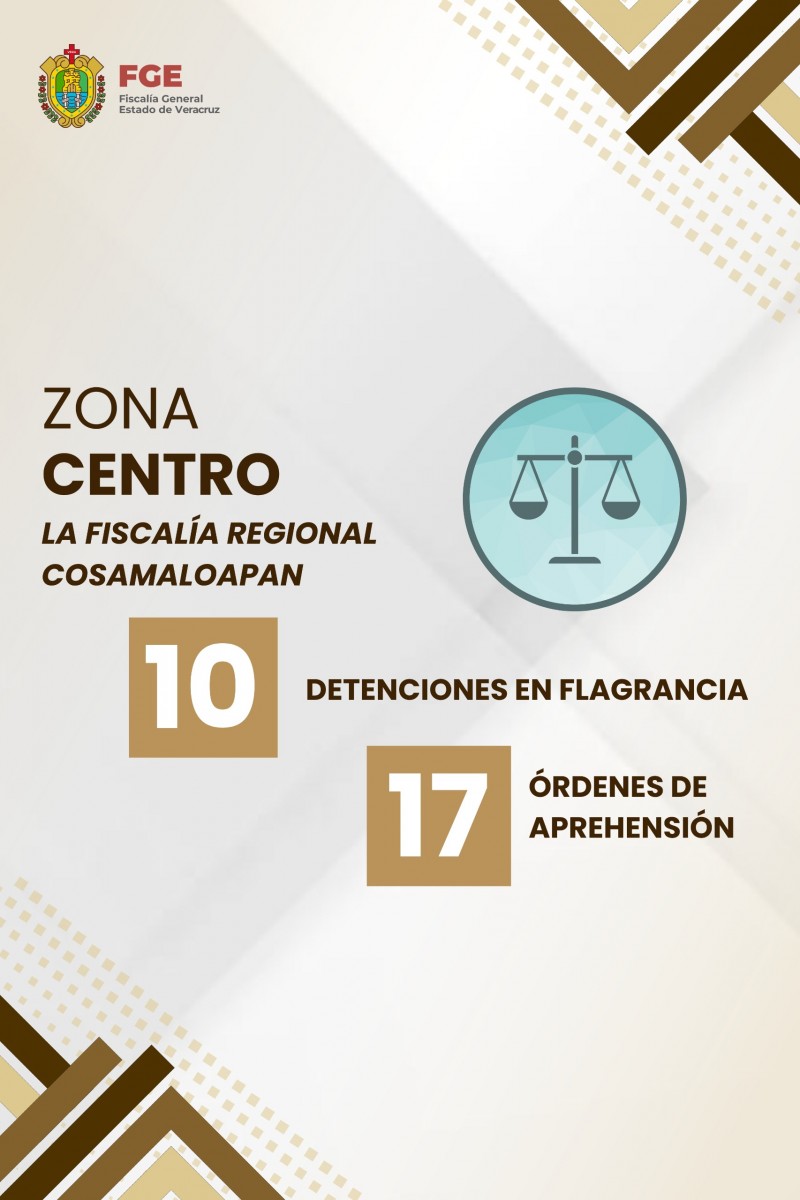 Aunado a ello, se suman las 15 detenciones en flagrancia y 14 órdenes de aprehensión comunicadas por la Fiscalía Regional Xalapa, así como las reportadas por la Fiscalía Regional Cosamaloapan, la cual efectuó 10 detenciones en flagrancia y la ejecución de 17 órdenes de aprehensión.