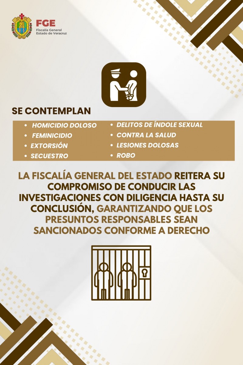 Cabe señalar que, dentro del total de mandamientos ejecutados, se incluyen procesos relacionados con conductas como el homicidio doloso, feminicidio, extorsión y secuestro. Asimismo, se contemplan delitos de índole sexual y contra la salud, además de otros ilícitos atendidos durante este período.