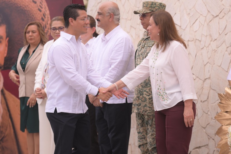 Como parte del acto, la Mandataria encabezó la guardia de honor y la colocación de una ofrenda floral en el monumento más grande del país, acompañada por representantes de los poderes del Estado, de la Mesa de Seguridad por la Paz y el presidente municipal, Daniel Antonio Baizabal González.