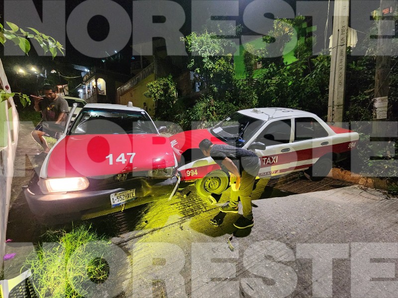De acuerdo con los primeros reportes, la unidad no habría quedado debidamente asegurada, lo que provocó que comenzara a descender por la pendiente. En su trayecto, el taxi impactó contra otra unidad de alquiler, identificada con el número 994, que circulaba en sentido ascendente sobre la misma vialidad. La colisión dejó daños visibles en ambos vehículos.