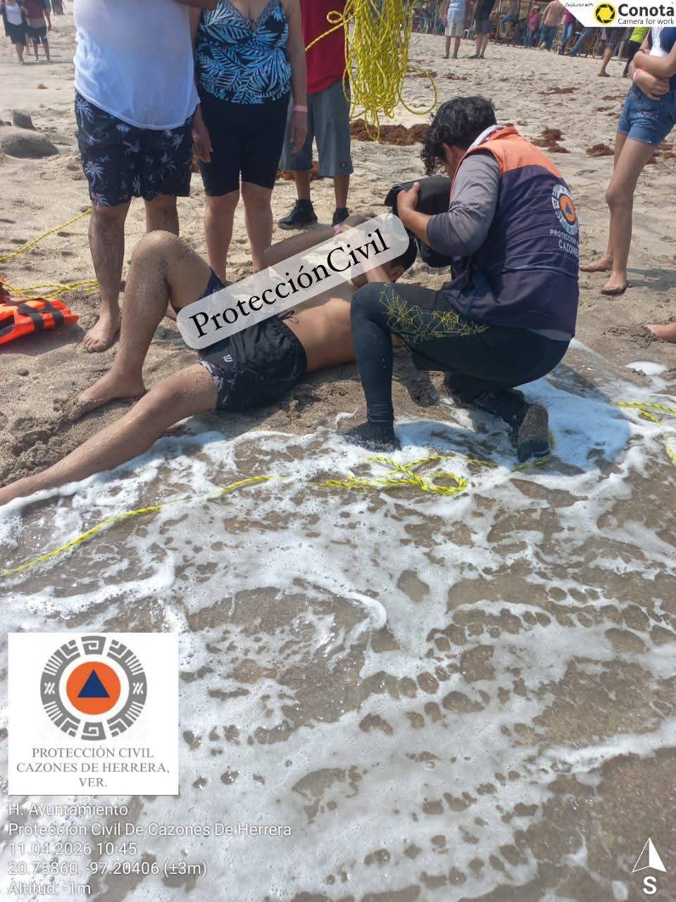 De acuerdo con los reportes, el masculino se encontraba en zona de riesgo cuando comenzó a ser jalado por el oleaje, situación que fue detectada de inmediato por elementos de Protección Civil, quienes no dudaron en actuar con rapidez y eficacia para ponerlo a salvo.