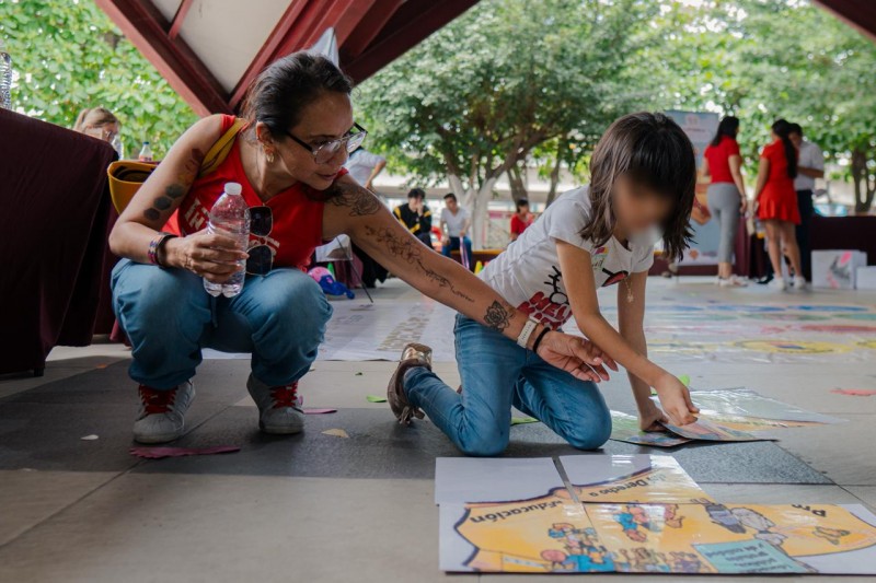 Como parte de la feria, se instalaron módulos interactivos con actividades educativas y recreativas, entre ellas talleres de títeres, cuentacuentos, dinámicas sobre derechos humanos, reciclaje, deporte, salud, prevención del delito y protección civil, facilitando el aprendizaje de manera lúdica.