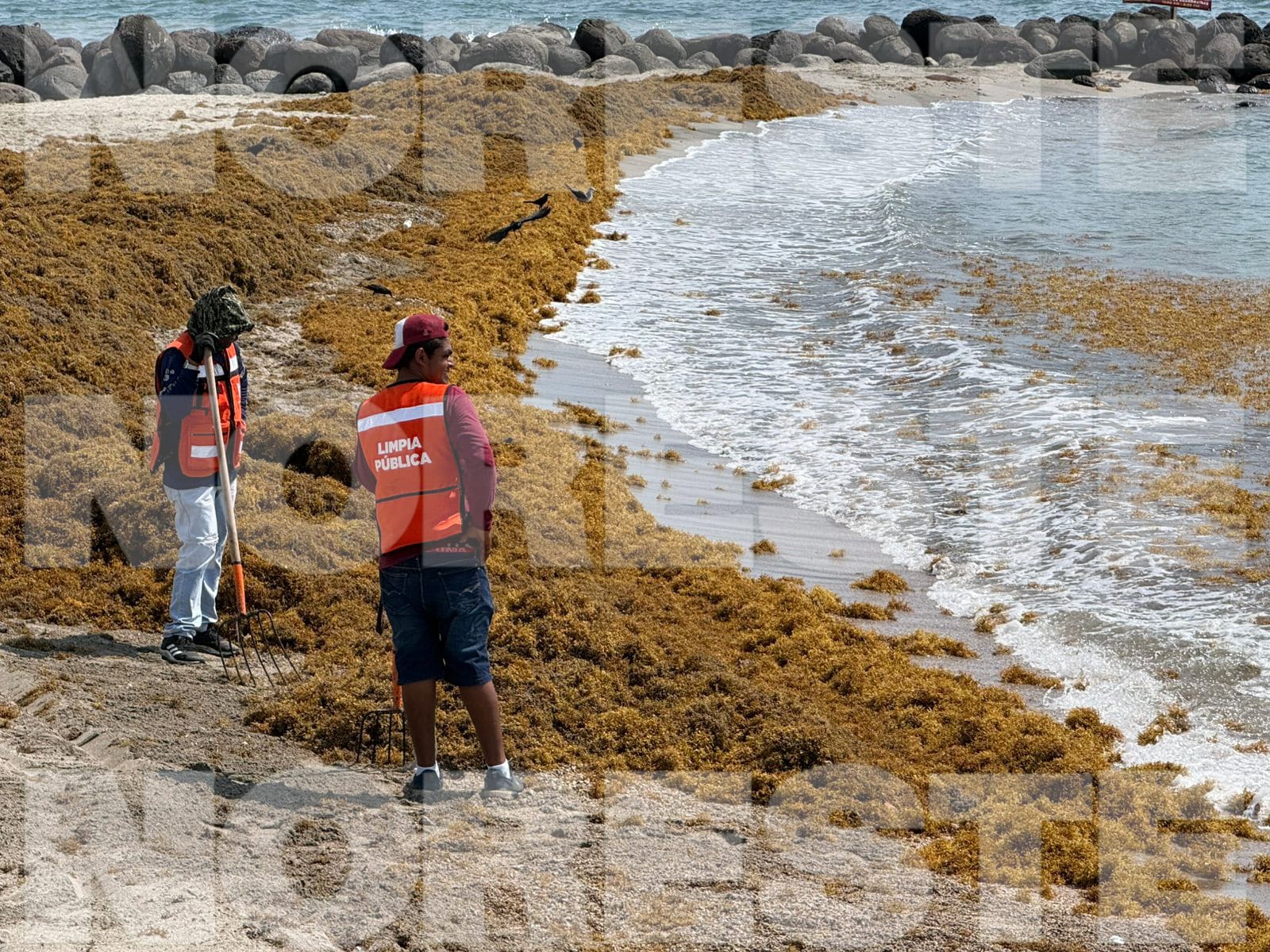 La presencia de sargazo comenzó a hacerse visible esta semana en distintas playas de Veracruz y Boca del Río, donde el alga se ha acumulado sobre la arena y ha complicado tanto el acceso al mar como las actividades cotidianas en la zona costera.