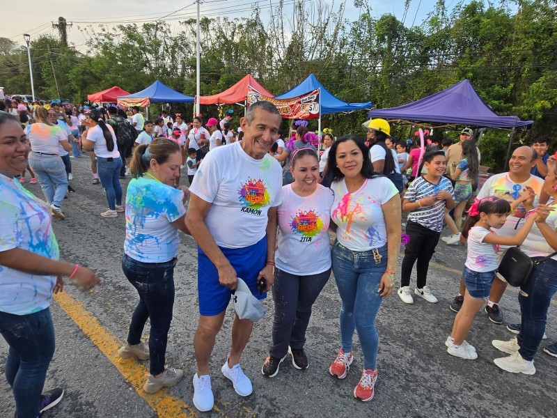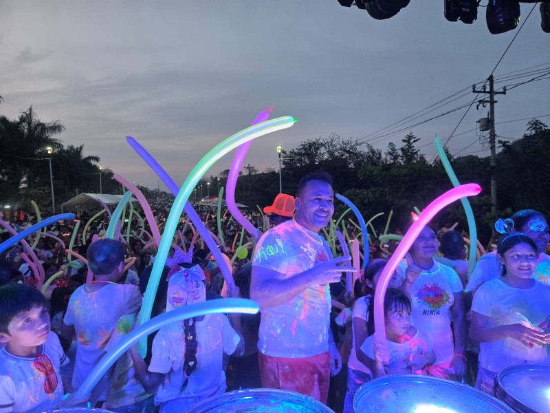 En un ambiente familiar, lleno de entusiasmo y color, el alcalde Raúl Hernández Gallardo encabezó la exitosa realización de la “Carrera Neón Colors”, acompañado por ediles y personal del Ayuntamiento de Tihuatlán.