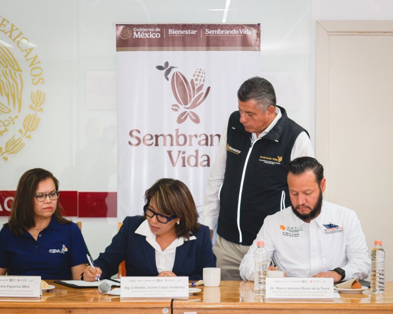 La Subsecretaría de Inclusión Productiva y Desarrollo Rural de la Secretaría de Bienestar, de manera simultánea, firmó tres convenios de colaboración entre el Programa Sembrando Vida, la Universidad Intercultural Indígena de Michoacán (UIIM), el Instituto de Capacitación para el Trabajo del Estado de Michoacán (ICATMI) y el Centro de Innovación y Desarrollo Agroalimentario de Michoacán (CIDAM), como parte de las acciones del Plan Michoacán por la Paz y la Justicia.