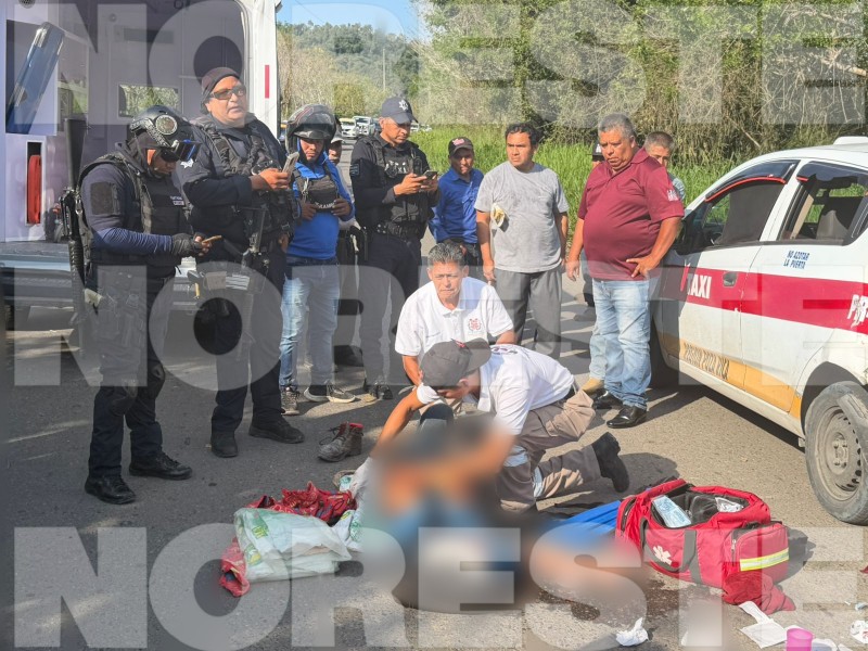 De acuerdo con los primeros informes, el conductor de la motocicleta, quien presuntamente se desempeña como repartidor de un molino de masa y tortilla, se estrelló contra un vehículo marca Chevrolet en modalidad taxi, identificado con el número económico 821 de Poza Rica, Veracruz, el cual se dirigía hacia la comunidad de Santa Águeda.