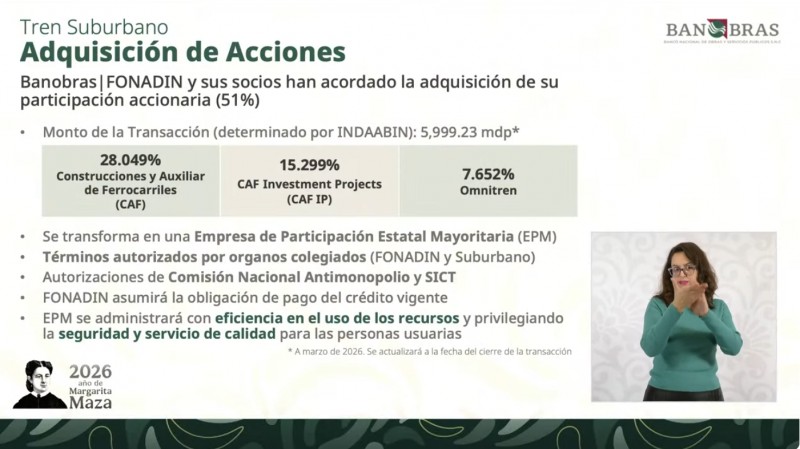 El Gobierno de México, a través de Banobras, formalizó la adquisición total de las acciones del Tren Suburbano, consolidando su transición de un modelo de gestión privada a un activo público propiedad del Estado mexicano.