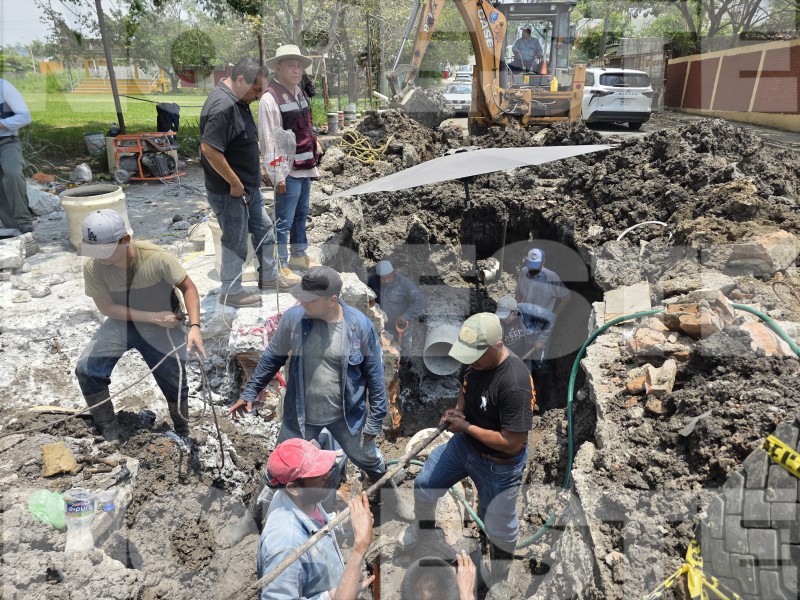 La rápida intervención de la Oficina Operadora de la Comisión de Agua del Estado de Veracruz (CAEV) permitió avanzar de manera significativa en la reparación de la línea principal de 18 pulgadas que abastece a la zona norte de la ciudad, tras la fuga registrada en la colonia Arroyo del Maíz.