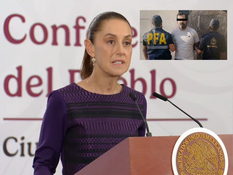 La titular del Ejecutivo Federal confirmó la detención en Buenos Aires, Argentina, del excontralmirante Fernando Farías Laguna, quien contaba con una ficha roja de Interpol por su presunta responsabilidad en el liderazgo de una organización criminal dedicada al contrabando de hidrocarburos.