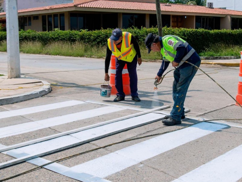 Con el objetivo de mejorar la seguridad y visibilidad en una de las zonas de mayor tránsito, se llevaron a cabo trabajos de balizamiento de pasos peatonales (cebras) en la calle José Adem Chaín, ubicada en la colonia Jardines.