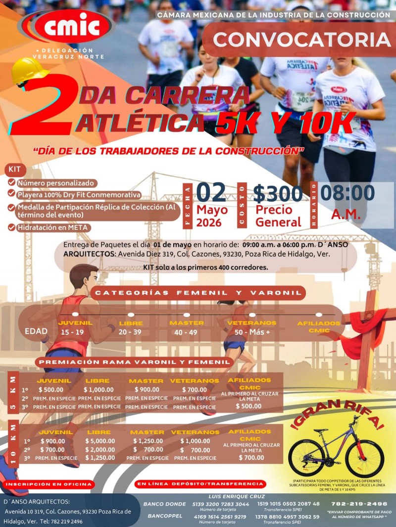 La inscripción tendrá un costo de 300 pesos e incluye un kit con playera y medalla para los participantes; para mayores informes, los interesados pueden comunicarse al número 823 69 11, en una actividad que promete reunir deporte, tradición y convivencia en torno a esta fecha significativa para el sector de la construcción.